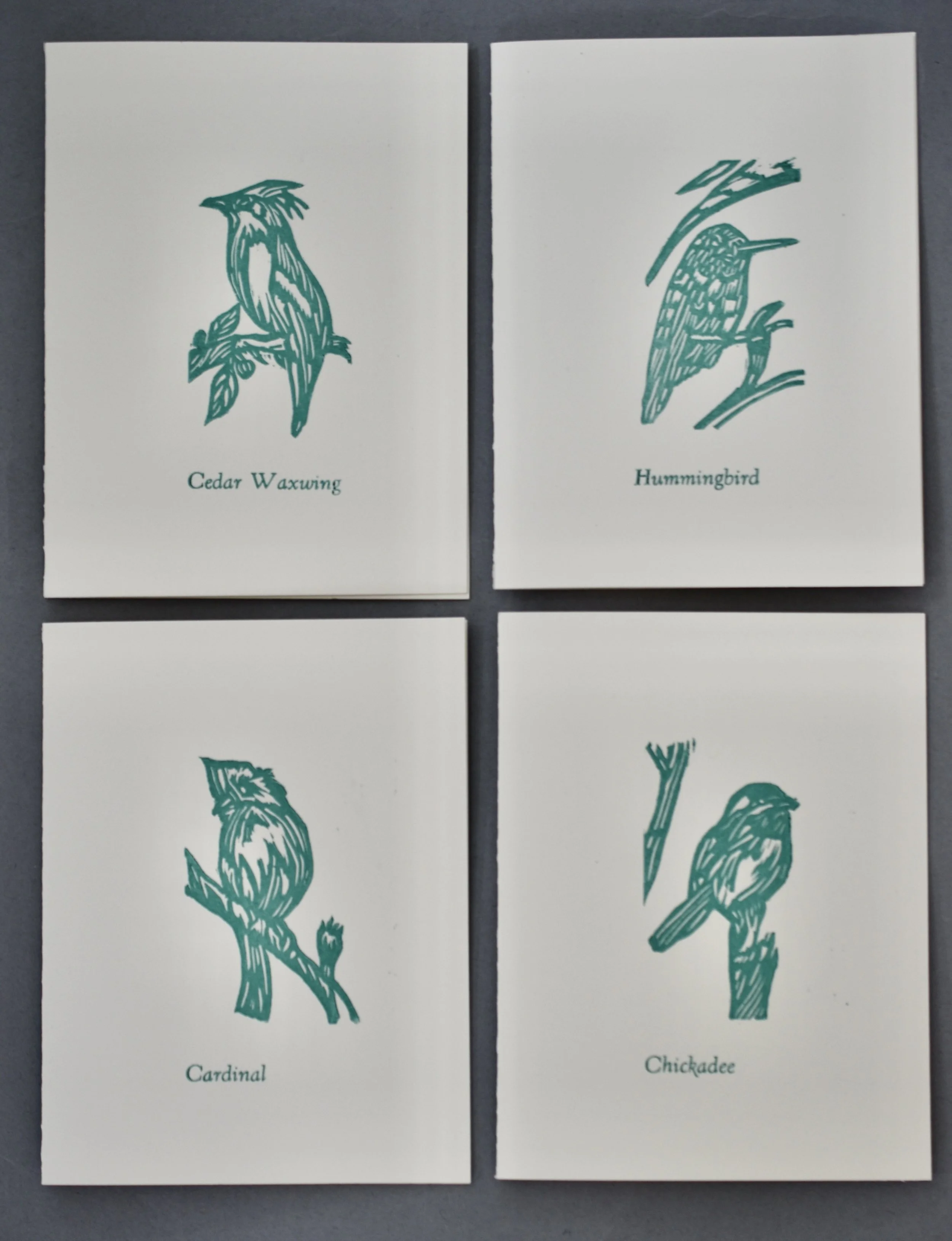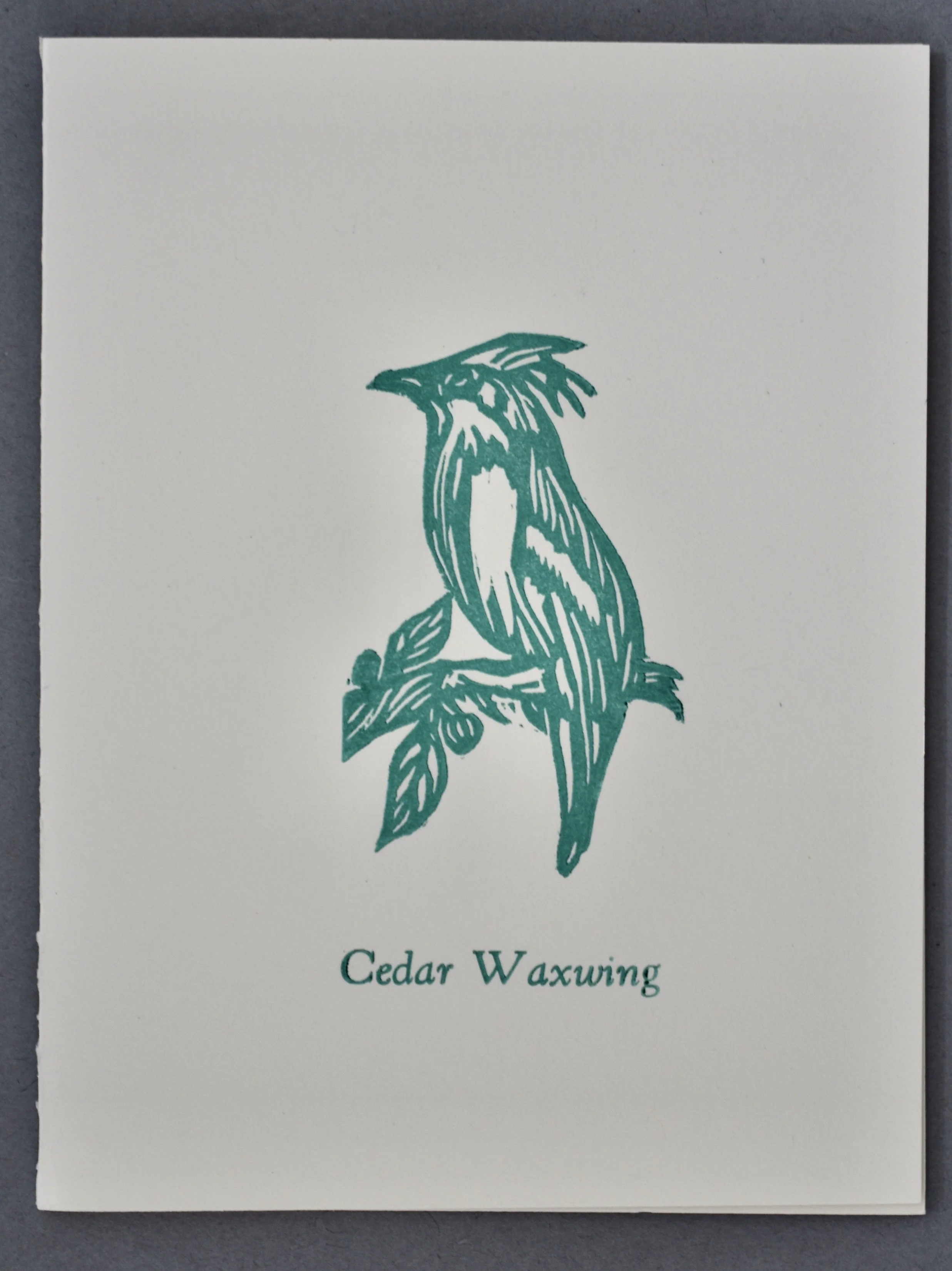 Relief prints with metal type on Cougar Natural paper, blank inside. 5.25”x4”.